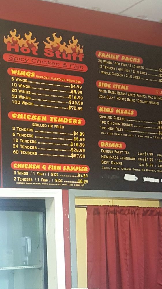 Hot Stuff Spicy Chicken and Fish offers a unique blend of New American cuisine with a focus on spicy chicken wings and fresh seafood. Located in Antioch, TN, this restaurant provides various amenities like delivery, takeout, reservations, and catering services. With a range of vegetarian options, it caters to diverse dietary preferences. Customers rave about the exceptional customer service, knowledgeable staff, and delicious, hot food. The 1 fish/3 wings combo and 2pc fish sandwich are standout items, praised for their perfect seasoning and moist, well-cooked texture. The medium spice level adds a flavorful kick that keeps customers coming back. With a casual atmosphere, outdoor seating, and good for groups and kids, Hot Stuff Spicy Chicken and Fish is a must-visit for those craving flavorful, satisfying meals in a welcoming setting.